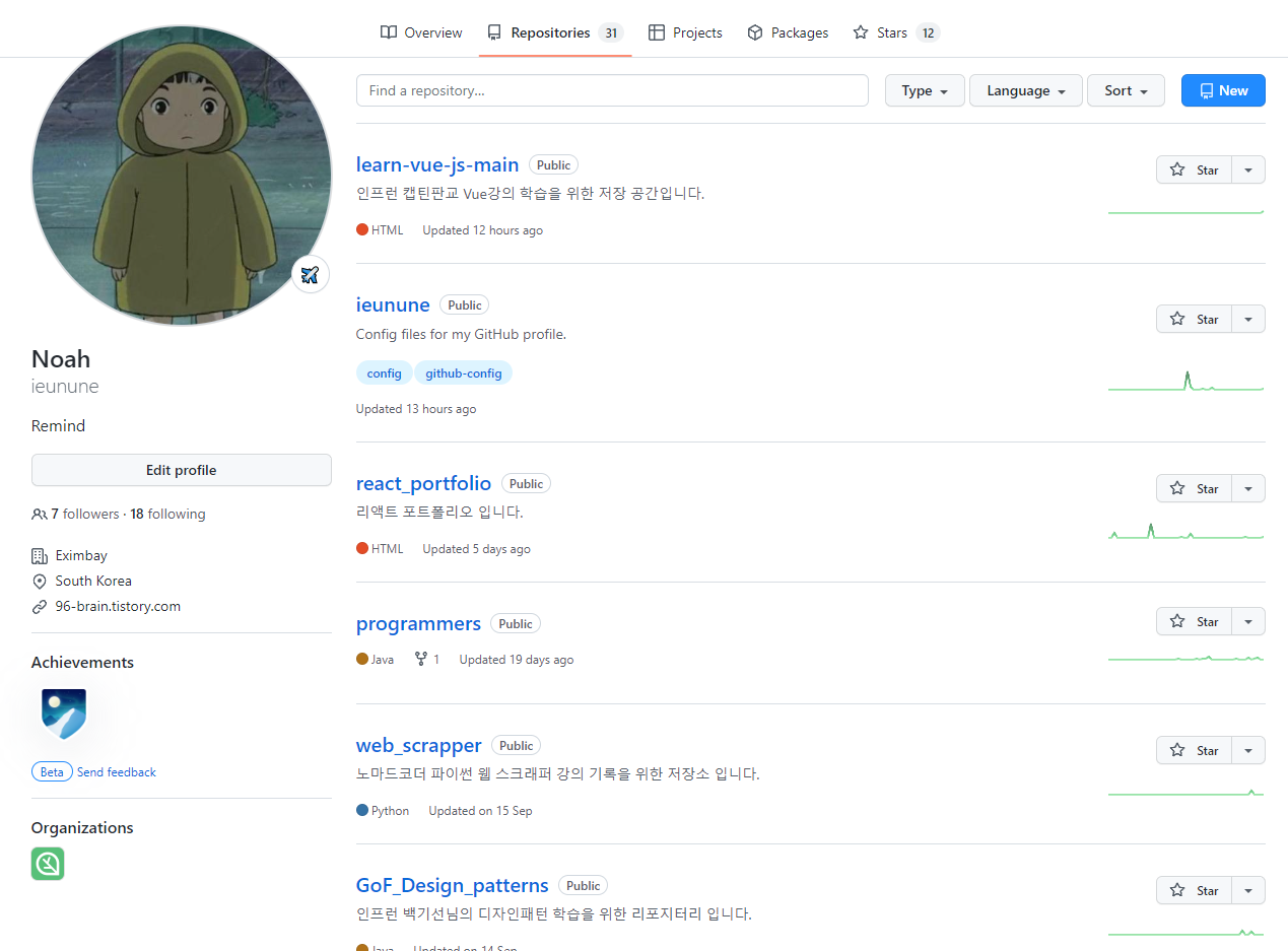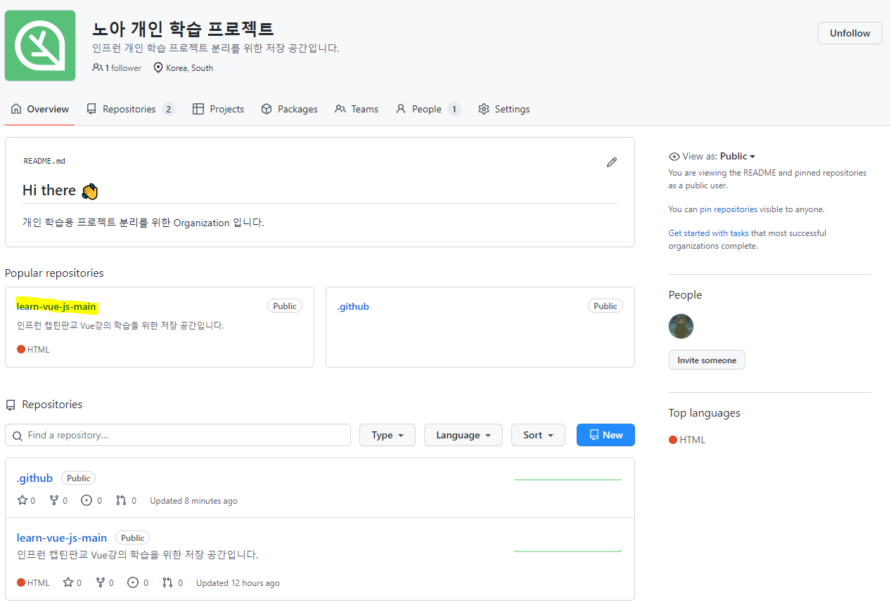 Organization을 보고 개인용으로 만들어서 개인 학습 프로젝트들을 분리하면 좀 낫겠다는 생각이 들었습니다.
