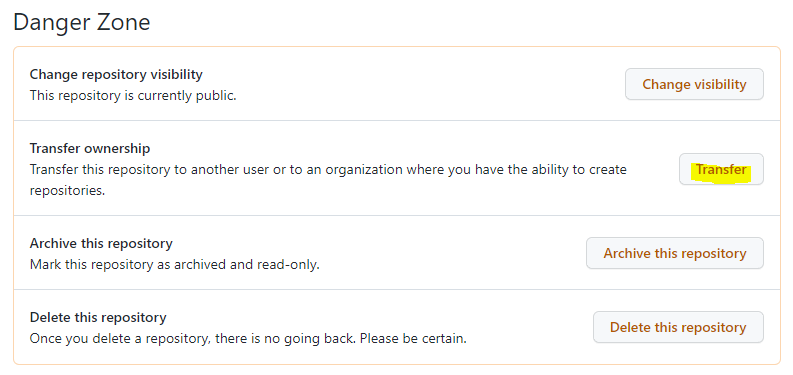 분리하는데에 가장 필요했던 부분은 현재 계정에 있는 Repository들을 Organization으로 옮기려고 찾아보니 Tranfer라는 기능이 있어 소개를 하려고 한다.